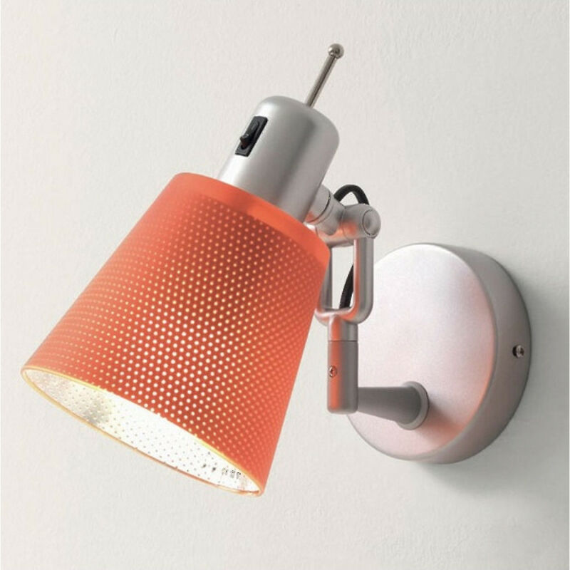 Applique da parete semplice e colorata, ideale anche per camere da bambini. Materiale plastico e alluminio per lampadine a led. Grazie allo snodo, l'applique può essere direzionato secondo la propria esigenza di luce. Applique Illuminando LOLA AP Lampada a parete colorata alluminio bianca o arancio con attacco E27 LED Realizzata con paralume nei colori bianco, arancio o grigio con interno in alluminio micro-forato, esterno colorato. Struttura in alluminio. Comoda accensione con interruttore posizionato sulla testa e piccola antenna per direzionare la luce. La lampada da parete è perfettamente orientabile grazie al braccio dotato di due snodi. Un design moderno e funzionale ideale per camere da letto, ufficio, soggiorno, sala da pranzo, studio, ristorante bar o altro ancora. Ovunque si voglia creare una sensazione rilassante e confortevole. Emissione di luce orientabile ma diffusa verso un solo lato (monoemissione). L' applique è provvisto di un portalampada attacco E27 per lampada a