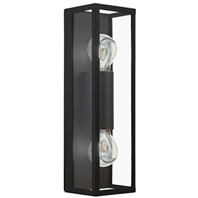 Collezione Amezola FAI LA DIFFERENZA CON IL DESIGN MODERNO E LUMINOSO L'applique AMEZOLA è costituita da una struttura nera in metallo e da vetri chiari che lasciano vedere benissimo le due lampadine.. L'applique si armonizza perfettamente con un arredamento dallo stile moderno e, grazie alla sua protezione anti-spruzzo (IP44), offre una particolare illuminazione in bagno. Le lampadine a filamento presenti nell'immagine non sono incluse nella consegna. Per la lampada è adatta qualsiasi lampadina con attacco E27.