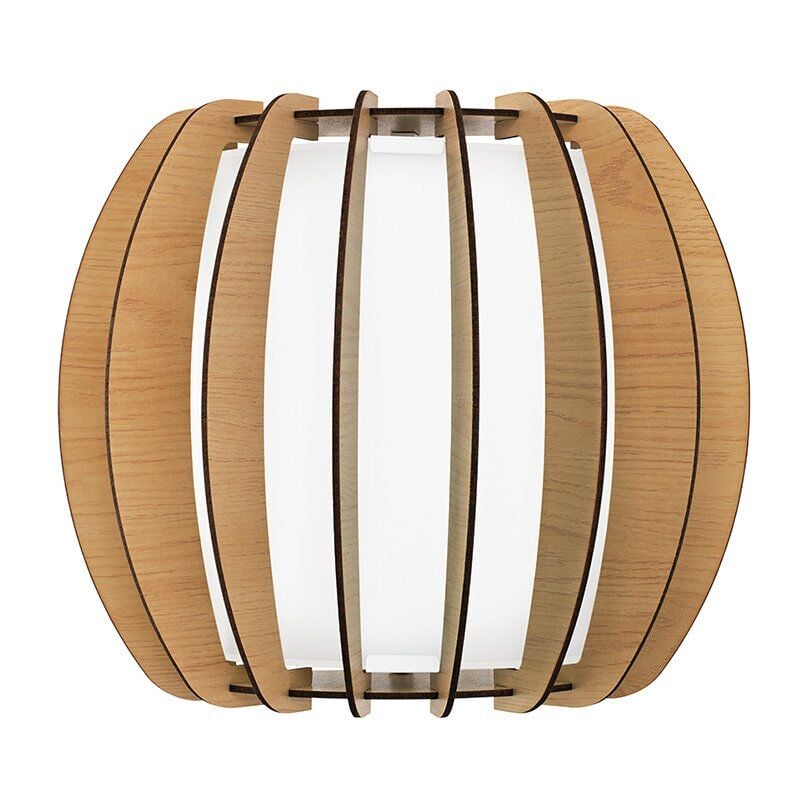 Collezione Stellato 1 LA LAMPADA CHE SI ADATTA AI TUOI AMBIENTI L'applique STELLATO 1 è composta da un paralume semi-sferico in lamelle di legno color acero e da un plafone interno di vetro bianco.. Questa lampada è adatta ad arredi moderni e ad ambienti quali il soggiorno, la camera da letto o il corridoio. La lampadina, con attacco E27, non è inclusa.