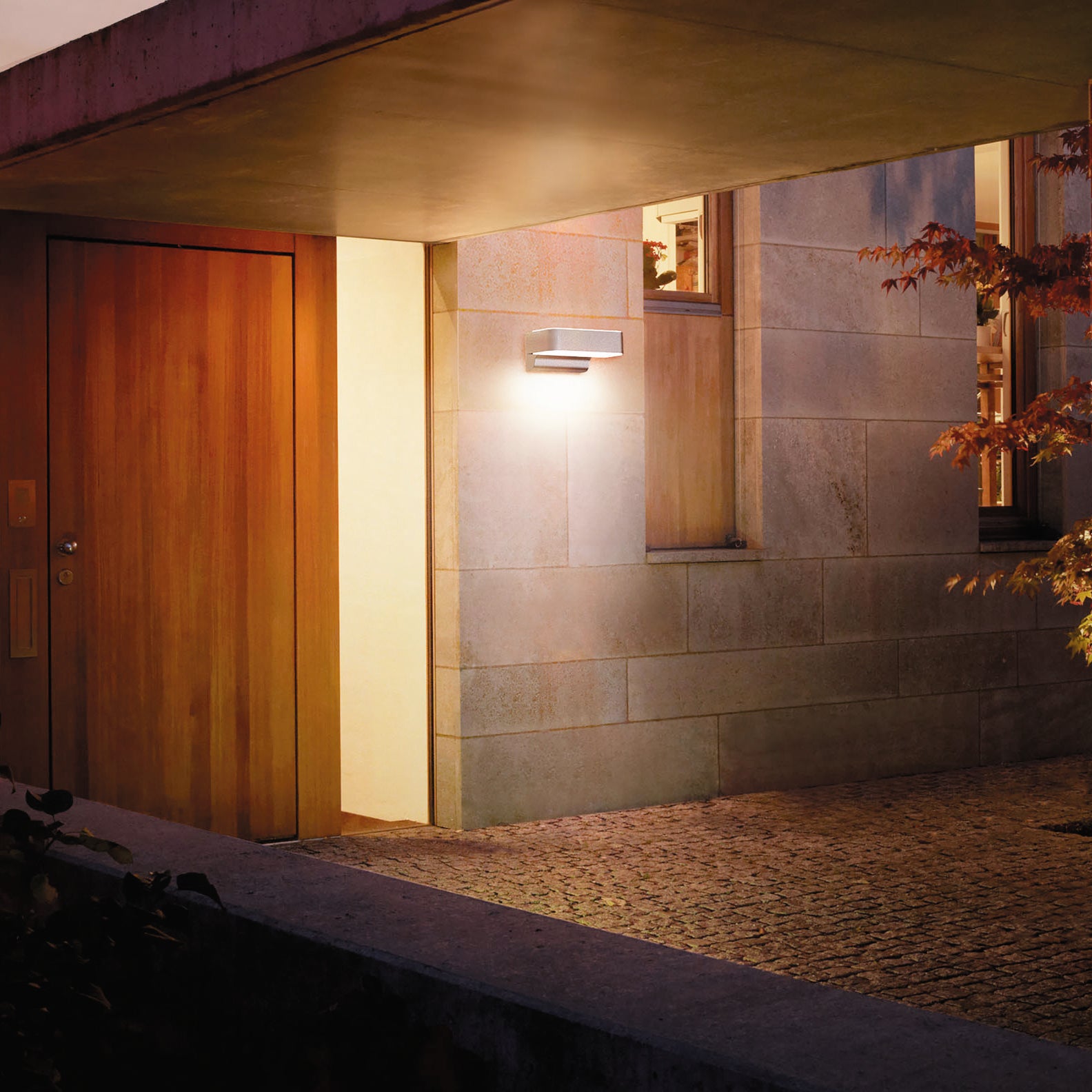 Equivalente a 60W di una vecchia lampadina ad incandescenza. Ideale per terrazze, portici e accessi di garage. IP44: Protetto contro spruzzi d'acqua provenienti da tutte le direzioni (360°). Con sensore di movimento