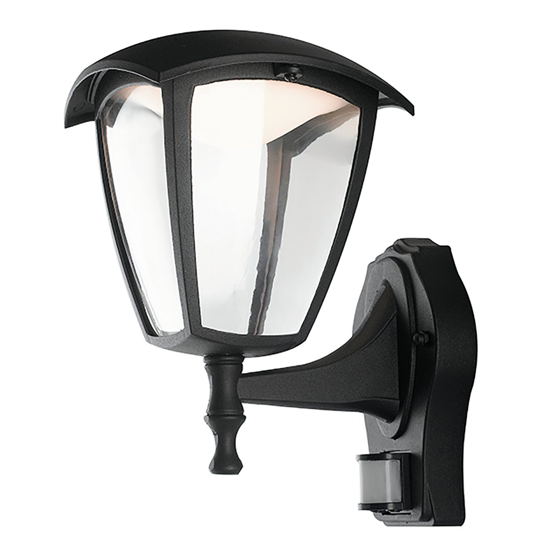 Lanterna in alluminio pressofuso colore nero goffrato diffusore in policarbonato LED integrato. Ideale per terrazze, portici e accessi di garage. IP44: Protetto contro spruzzi d'acqua provenienti da tutte le direzioni (360°). Con sensore di movimento