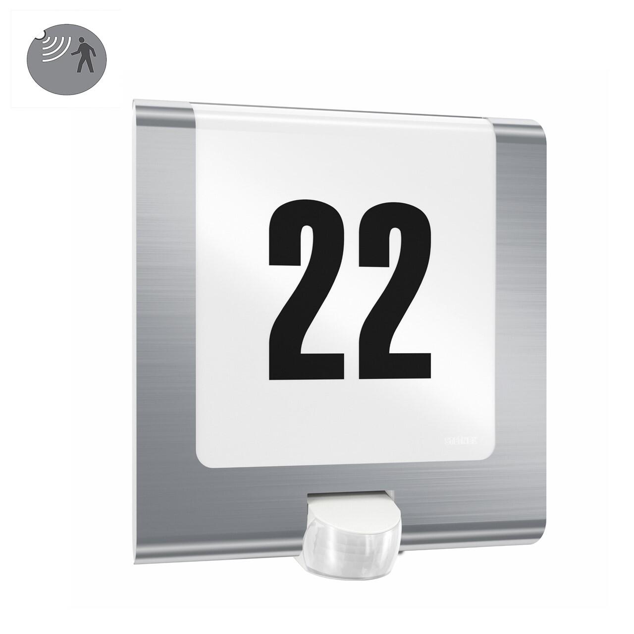 Luce con valore informativo. Moderna lampada a sensore LED per esterni L 220 LED, con ampia superficie anteriore quadrata per l'applicazione del numero civico autoadesivo. Morbida ed invitante luce ambiente per la zona d'ingresso. Flusso luminoso di 550 Im con un consumo di energia di soli 7,5 Watt. Angolo di rilevamento di 180°, raggio d'azione di 10 m. Inclusi cifre e lettere minuscole adesive, con cui si può comporre il proprio numero civico.
