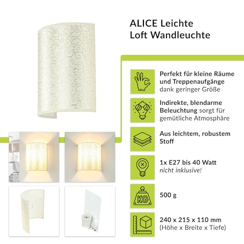 Applique per interni Alice lampada da parete stile elegante antico in stoffa color bianco oro con motivo Barocco E27 per camera da letto soggiorno