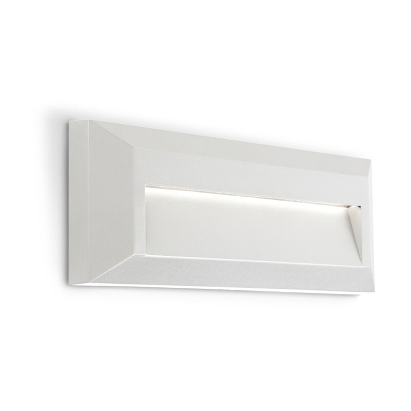 LedsC4 Lampada Da Parete Ip66 Kossel Indirect Rectangular Led 2.6W Bianco Neutro - 4000Lampade da parete per uso esterno per illuminare frontalmente e verso il basso. Include filtri per emulare la luce calda. Appositamente progettato per nascondere ogni tipo di vite. Include frontali decorativi in diverse finiture e facilmente intercambiabili. Include 2 uscite per cavi per una facile installazione in catenaMateriale della struttura: Policarbonato + ABSFinitura struttura: BiancoMateriale del diffusore: PolicarbonatoFinitura diffusore: Trasparente. Protezione contro i raggi ultravioletti