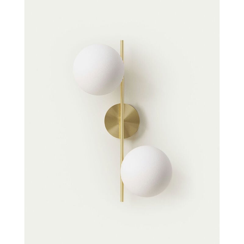 Applique lampada da parete in acciaio finitura ottone con sfere in vetro opaco attacco lampadine G9 Stile vintage: L'applique è realizzata in metallo color bronzo, conferendo un tocco retrò e di classe all'ambiente. Materiali di qualità: Realizzata in metallo resistente, l'applique garantisce durata nel tempo e resistenza all'usura. Ampolle in vetro bianco opaco: L'applique presenta 2 eleganti ampolle bianche opache in vetro, che diffondono la luce in modo uniforme a creare un'atmosfera accogliente. Supporto per lampadine a LED con attacco G9: La base dell'applique è progettata per supportare lampadine a LED con attacco G9 con wattaggio massimo di 60w, offrendo un'illuminazione efficiente ed energeticamente sostenibile. Versatile e adatta a diversi ambienti: Grazie al suo design affascinante e versatile, l'applique si adatta perfettamente a diverse ambientazioni, come case, negozi, ristoranti e bar. Facile da installare: L'applique è fornita di tutti i componenti necessari per