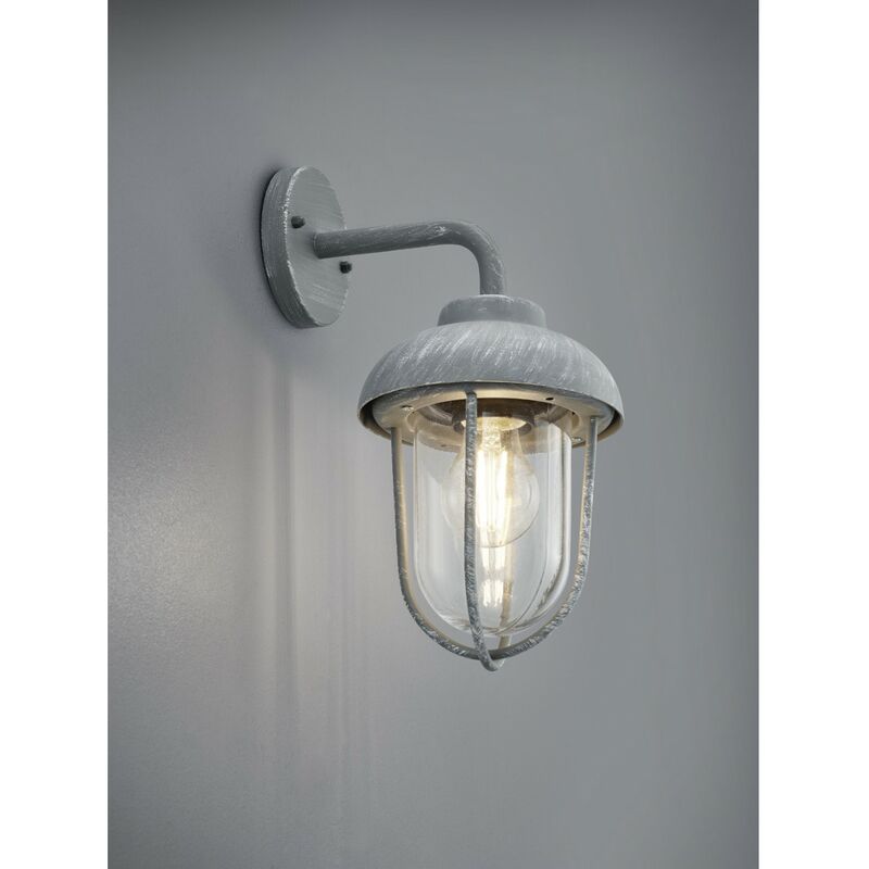 L'applique DUERO di Trio Lighting è composta da una struttura a forma di lanterna in pressofusione di alluminio finitura in calcestruzzo con diffusore in vetro trasparente. Dotata di alloggio per lampadina E27 max 40 watt (acquistabile separatamente). Il grado di protezione IP44 della lampada DUERO (protezione contro spruzzi d'acqua provenienti da qualsiasi direzione) permette di installarla in luoghi esterni della casa. Una lampada da parete dallo stile rustico, ideale per l'illuminazione di balconi, terrazze, garage e ingressi. Disponibile anche le varianti antracite e ruggine.