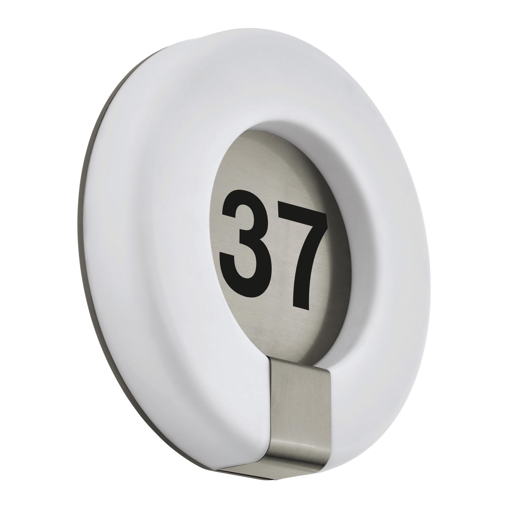 MARCHESA Parete 15W LED Struttura / diffusore in alluminio spazzolato e policarbonato biancoIP44Dimensioni: Ø30 x H7. Inclusi cifre e lettere minuscole adesive, con cui si può comporre il proprio numero civico.