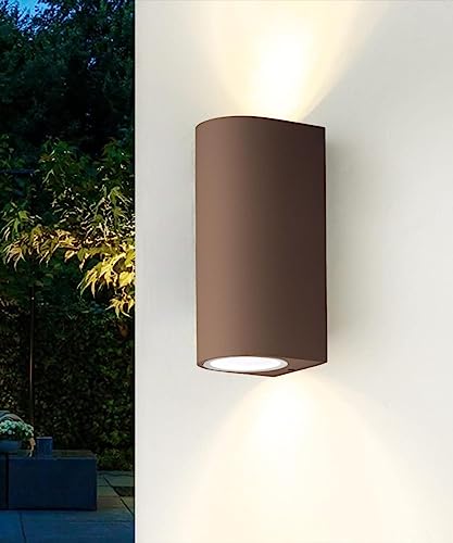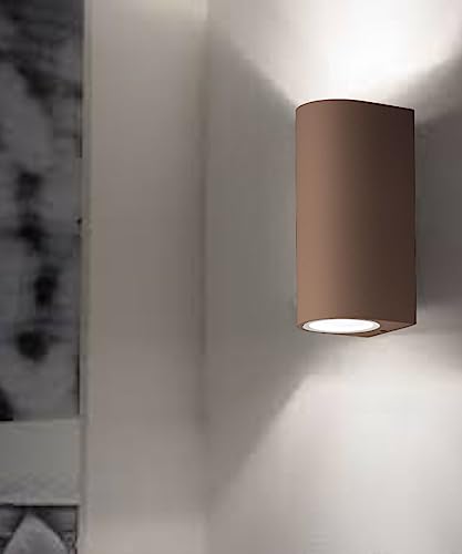 Applique marrone ruggine per esterni moderna luce sopra sotto biemissione ip44 alluminio pressofuso gu10 led