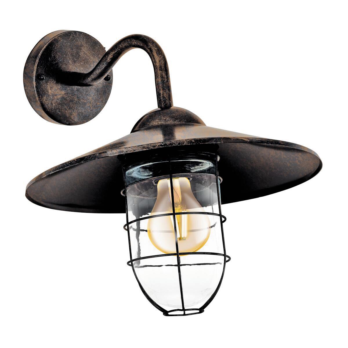 Struttura color rame, diffusore in Vetro trasparente, dimensioni L 30 x H 25 cm, 1 lampadina non inclusa, attacco lampadina E27 attacco grande, wattaggio massimo 60 W. Applique ideale per terrazze, portici e accessi di garage. Indicato per luoghi esterni esposti a spruzzi d'acqua provenienti da tutte le direzioni