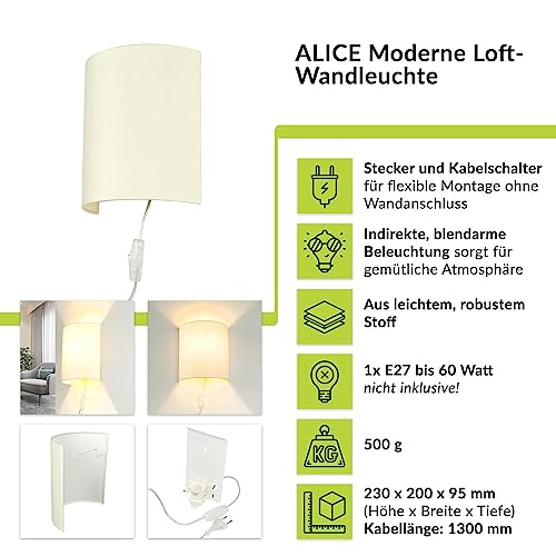 Applique moderna color crema con cavo elegante moderno lampada da parete loft ALICE