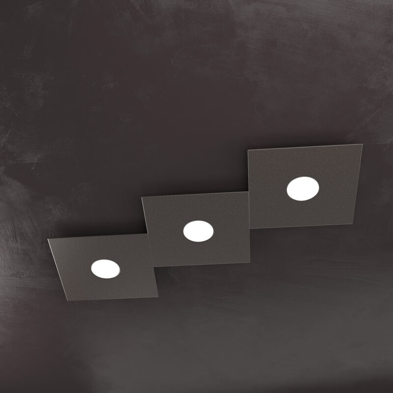 Collezione Eccentric LA LUCE ADATTABILE E FLESSIBILE Lampada 3 luci formata da due lastre quadrate di metallo verniciato in finitura marrone.. Queste lampade sono componibili e personalizzabili, così puoi creare infinite forme e mix di colori. I componenti base sono due: uno con sorgente luminosa (1156/1L) e uno solo decorativo (1156/1D). Questi componenti possono essere assemblati fra loro per creare infinite forme e mix di colori. Per comodità vengono proposti alcuni kit precomposti con codice dedicato all' interno del sito. La presente collezione in quanto componibile è indicata per risolvere problemi di decentramento tra punto luce e zona da illuminare. Un altro punto di forza del prodotto consiste nel non utilizzare dei led integrati ma una lampadina Gx53 che, una volta montata, arriva a filo della lastra metallica e può essere facilmente sostituita dall'esterno. Scopri la Serie Eccentric e lasciati ispirare dalla sua versatilità e qualità.Questo articolo è disponibile in diverse