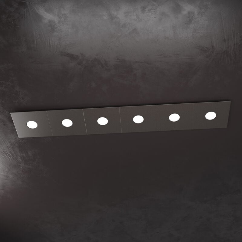 Collezione Eccentric LA LUCE ADATTABILE E FLESSIBILE Lampada 6 luci formata da sei lastre quadrate di metallo verniciato in finitura marrone.. Queste lampade sono componibili e personalizzabili, così puoi creare infinite forme e mix di colori. I componenti base sono due: uno con sorgente luminosa (1156/1L) e uno solo decorativo (1156/1D). Questi componenti possono essere assemblati fra loro per creare infinite forme e mix di colori. Per comodità vengono proposti alcuni kit precomposti con codice dedicato all' interno del sito. La presente collezione in quanto componibile è indicata per risolvere problemi di decentramento tra punto luce e zona da illuminare. Un altro punto di forza del prodotto consiste nel non utilizzare dei led integrati ma una lampadina Gx53 che, una volta montata, arriva a filo della lastra metallica e può essere facilmente sostituita dall'esterno. Scopri la Serie Eccentric e lasciati ispirare dalla sua versatilità e qualità.Questo articolo è disponibile in diverse