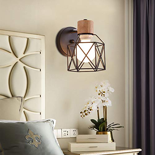 BYX Applique moderna applique con lampadina E27 6000K, applique nera regolabile con supporto in legno decorato per illuminazione notturna del corridoio della camera da letto del soggiorno