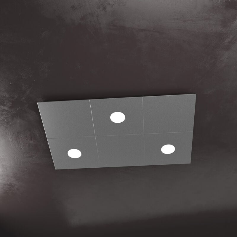 Collezione Eccentric LA LUCE ADATTABILE E FLESSIBILE Lampada 3 luci formata da sei lastre quadrate, tre decorative e tre con le luci, tutte di metallo verniciato in finitura grigio antracite.. Queste lampade sono componibili e personalizzabili, così puoi creare infinite forme e mix di colori. I componenti base sono due: uno con sorgente luminosa (1156/1L) e uno solo decorativo (1156/1D). Questi componenti possono essere assemblati fra loro per creare infinite forme e mix di colori. Per comodità vengono proposti alcuni kit precomposti con codice dedicato all' interno del sito. La presente collezione in quanto componibile è indicata per risolvere problemi di decentramento tra punto luce e zona da illuminare. Un altro punto di forza del prodotto consiste nel non utilizzare dei led integrati ma una lampadina Gx53 che, una volta montata, arriva a filo della lastra metallica e può essere facilmente sostituita dall'esterno. Scopri la Serie Eccentric e lasciati ispirare dalla sua versatilità