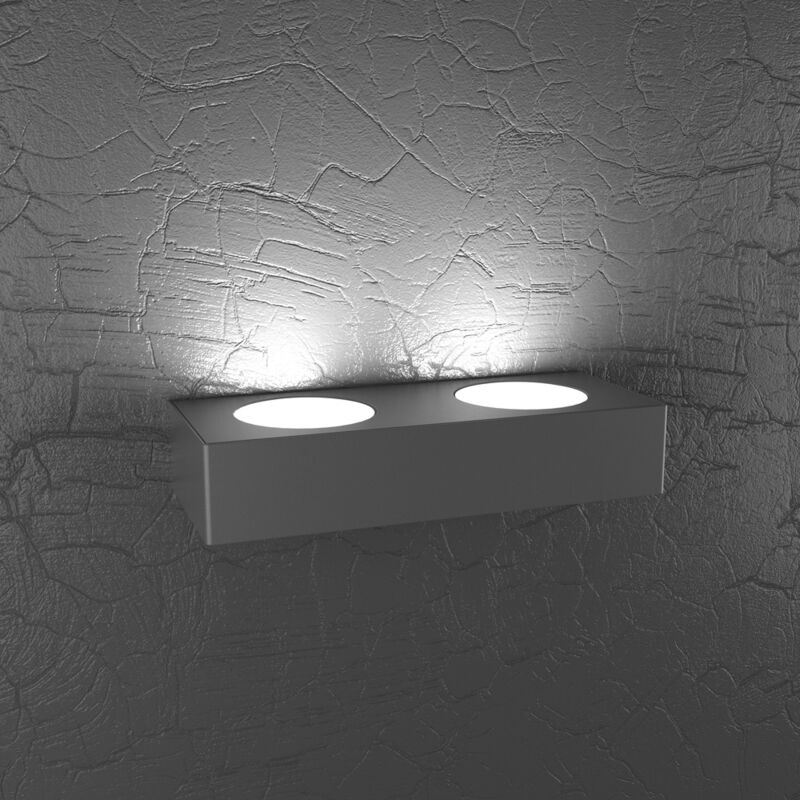 Collezione Plate UN'ILLUMINAZIONE SENZA LIMITI, UN DESIGN SENZA COMPROMESSI Applique 2 luci di finitura grigio antracite, realizzata con lastre quadrate di metallo sulle quali sono state effettuate delle lavorazioni di fresatura.. Il punto di forza del prodotto consiste nel non utilizzare dei led integrati ma una lampadina Gx53 che, una volta montata, arriva a filo della lastra metallica e può essere facilmente sostituita dall'esterno.Questo articolo è disponibile in diverse finiture e/o dimensioni. E' possibile indicarlo nell'apposito campo NOTE presente in conclusione di ordine oppure contattarci dopo aver effettuatol'ordine.
