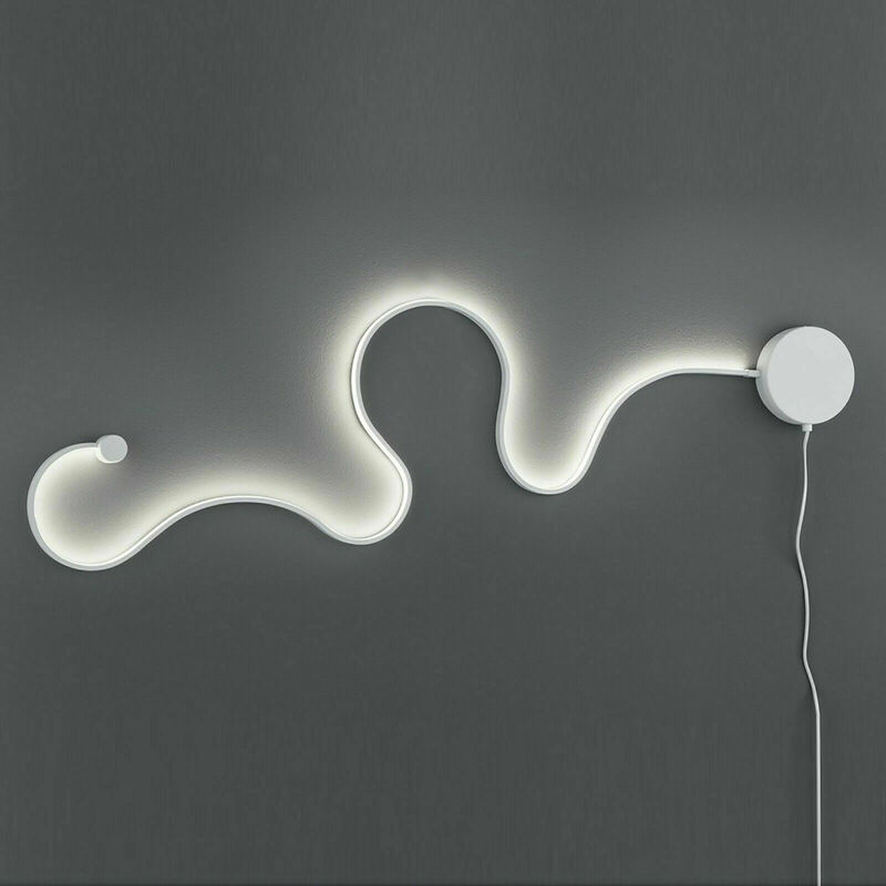 Applique da parete di colore bianco dal design moderno di forma curva stile "serpente" realizzata in alluminio con LED integrati. Una potenza di 28W ideale per l'illuminazione interna che permette di valorizzare camere da letto, soggiorno, salotti ma anche all'interno di negozi, attività commerciali, uffici per dare un tocco di eleganza a pareti interne. Dotata di driver integrato per il corretto collegamento alla rete elettrica 230V. Illumina e arreda allo stesso tempo con uno stile particolare grazie a questa lampada da parete. Il diffusore opaco consente un'illuminazione più uniforme senza abbagliare la vista, generando particolare un effetto di luce su pareti e muri. E' un autentico colpo d'occhio negli arredamenti moderni, e per di più disegna un'immagine di luce formidabile. L'installazione può avvenire in tutte le direzioni: verticale, orizzontale o in diagonale secondo il proprio gusto. La lampada ha un angolo di luce diffuso di 180 gradi, è disponibile di colore bianco con
