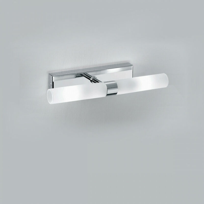 Applique da parete o da soffitto semplice ed essenziale a luce diffusa, da posizionare sia ai lati di uno specchio o quadro, sia sopra di quest'ultimi. Una forma anonima ad alta resa d'illuminazione. Applique moderno Illuminando DON 2 CR G9 LED Lampada da parete o soffitto a due luci con attacco G9 max. 40W Struttura in metallo cromo lucido. Vetri pirex bianco satinato. Per chi avesse problemi di fissaggio sulla parete può essere sostituita la base con una clip da ancorare direttamente sullo specchio mediante un piccolo foro (sullo specchio) di 1 cm circa. Un'emissione di luce diffusa per pareti o per soffitti. L'applique o plafoniera è provvista di due portalampade attacco G9 per lampadine a LED escluse non indichiamo il wattaggio della lampadina a led perchè sono in continua evoluzione e non avendo un'elevata emissione di calore a differenza delle alogene possono essere messe di qualsiasi potenza purchè venga rispettato le dimensioni del suo alloggio. Le lampadine a led possono