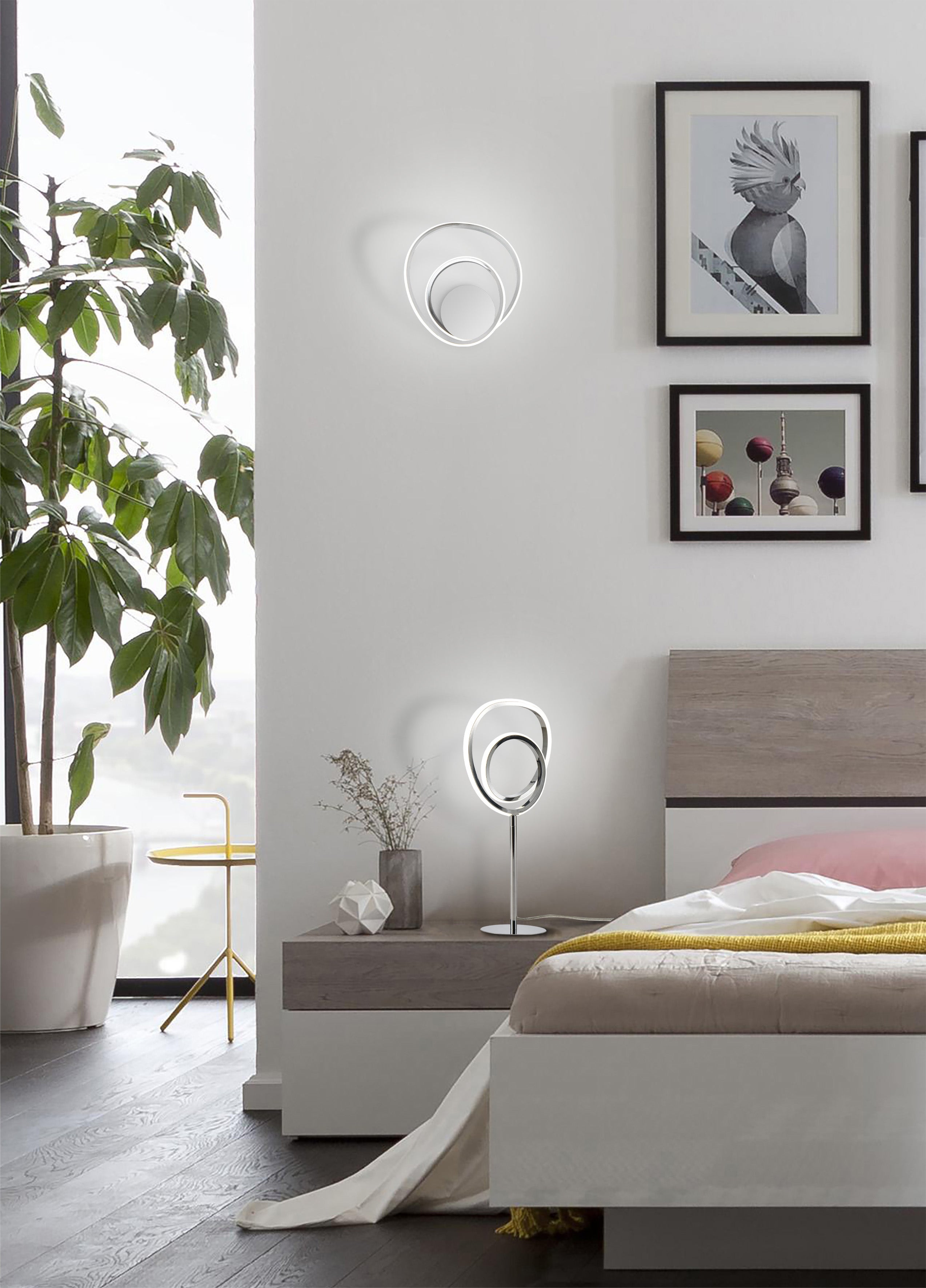Applique moderna Rene' in alluminio cromo e silicone bianco. LED integrato.