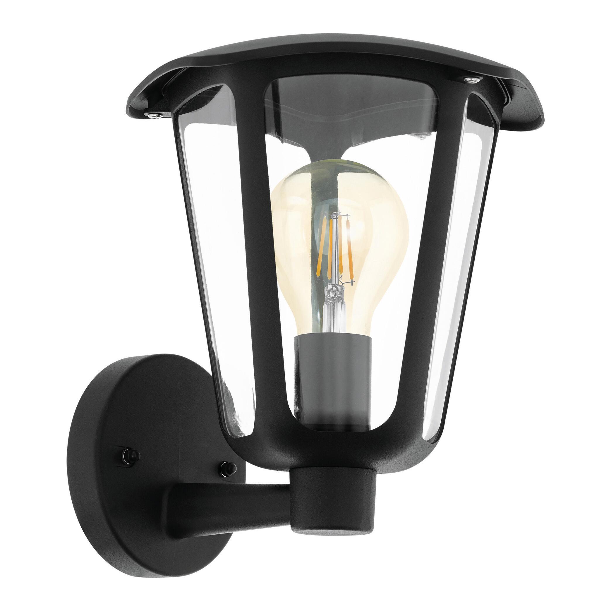 MONREALE Parete 1X60W E27 Struttura lega in alluminio verniciato nero / diffusore lega in alluminio verniciato nero e vetro trasparente. IP44 Dimensioni: 23 x H27.5