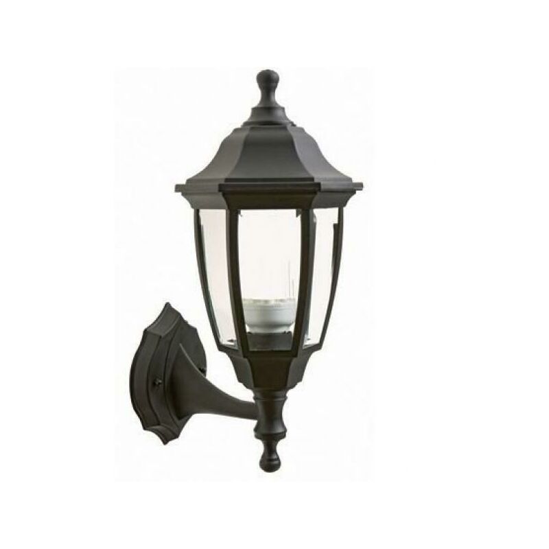 Struttura in termoplastico colore nero. Diffusori in vetro trasparente molato e curvato. Portalampada E27 in tinta. Accessori per il fissaggio inclusi. Adatta per lampade ad incandescenza. Adatta per lampade a risparmio energetico. Altezza max lampade mm 190. Alimentazione 230 V ~ 50 Hz. Contro base di fissaggio in termoplastico. Classe di protezione: IP43 Potenza massima lampade: 60W Dimensione: 37x21x17 cm