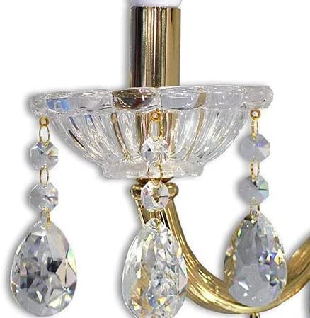 Applique da parete realizzato in metallo dorato con pendenti in vetro taglio cristallo, rifinito nei minimi dettagli.