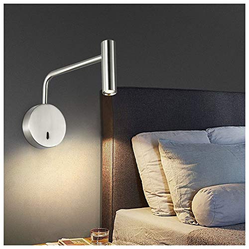 Applique LED da Parete Comodino Interno Luce di lettura 3000K Bianco Caldo Lampada da Muro Moderna Orientabile per Soggiorno e Camera da letto Apparecchi di Illuminazione con Interruttore,Argento