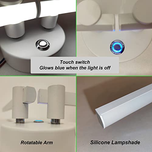 VOMI LED Applique da Parete Dimmerabile 12W Lampada da Parete Moderno con Interruttore Touch, 2 Fiamme Girevole 300° Lampada Muro da Comodino in Alluminio per Specchio da Bagno Camera da Letto