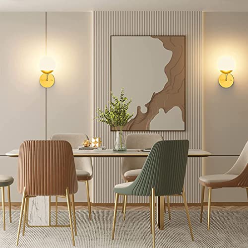 Applique da Parete Dorata Illuminazione a 1 Luce Lampada da Parete Moderna di metà secolo con Paralume in Vetro Bianco Lampade da Parete per Interni per Comodino, Bagno, Soggiorno, corridoio (Oro)
