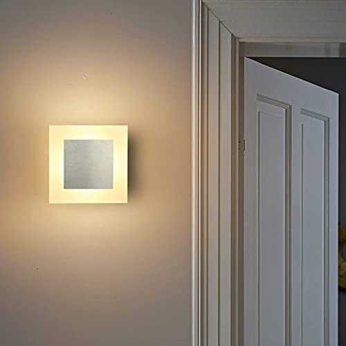 ZMH Applique da parete interni led - Lampada a muro in ferro & acrilico applique moderno quadra luce notturna 3000K 6.8W lampada d emergenza per corridoio camera da letto scale e studio