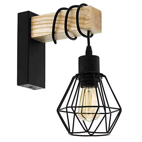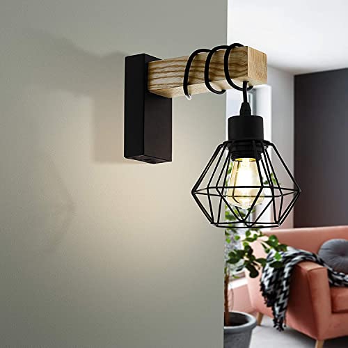 Applique da parete interni vintage di legno lampada da parete retro nero applique metallo industrial comodino luce notturna camera lampada E27 porta lampadina altezza regolabile