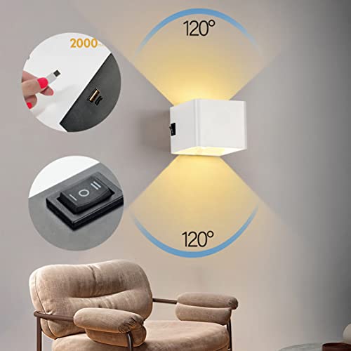 Lampada da parete per interni a LED da 5W Design wireless a batteria - Lampada da parete per camera da letto con batteria al litio integrata da 2000 mAh, caricata tramite cavo USB universale. Ha un design semplice e senza tempo e si adatta ovunque