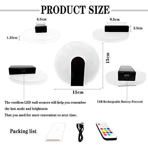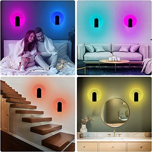 Applique da Parete Interno, RGB Dimmerabile Lampada da Parete con Telecomando, Lampada a Muro a Batteria Ricaricabile USB Aplique LED da Parete Interni per Soggiorno Camera da letto Corridoio, 2 Pezzi