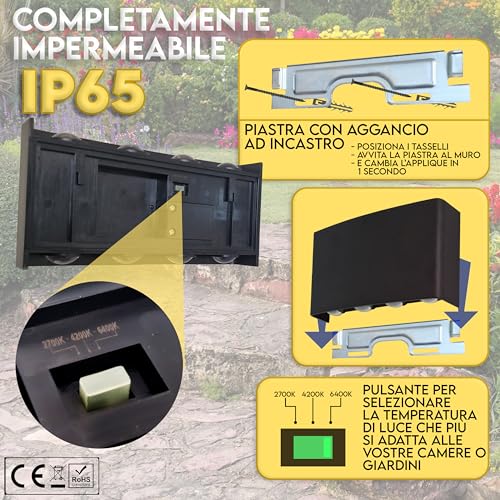 MAKA Applique da Parete Interno Esterno Impermeabile IP65 6W 600LM - 8W 800LM Up Down LED Cambia Temperatura Luce Calda Naturale Fredda Lampada Muro Faretto Risparmio Energetico (Nero - 8 watt)
