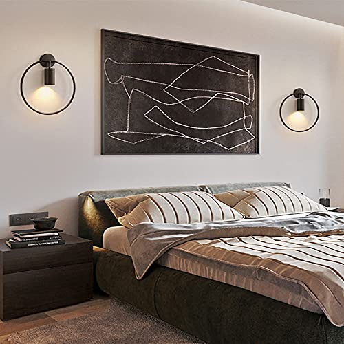 Applique da Parete Interno Moderna, Faretti da Parete Comodino Orientabile Tondo con Lampadine LED GU10 da 5W Luce Calda 3000K Lampada a Muro Decorativa per Camera da Letto Soggiorno Corridoio,Nero