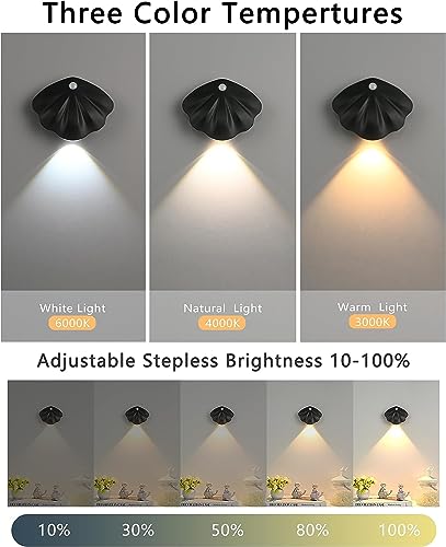 Applique da Parete Interno, 2 Pezzi Applique da Parete con Sensore di Movimento,Applique Camera da Letto con 3 Modalità di Colore, 3 livelli di luminosità Applique da Parete,Nero