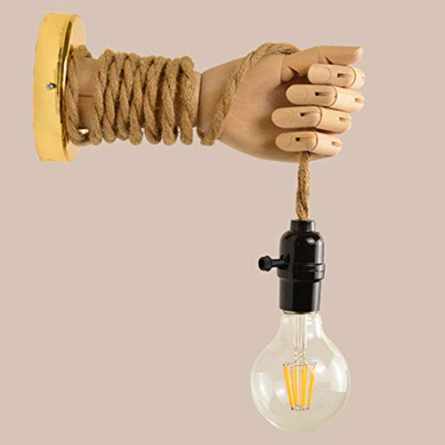 VOMI DIY Applique da Parete Legno Corda di Canapa Design, Massello Mano Lampada da Parete, Base Ferro Lampada Muro, Vintage Industriale Regolabile Creativo Retrò Luce da Parete E27, 2 Pack