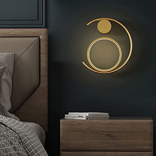 [Stile di design]: moderna lampada da parete nordica, applique da comodino per camera da letto con anello geometrico in metallo dorato, che può completare la decorazione dello spazio e aggiungere più personalità alla decorazione della tua casa.