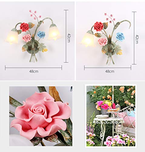 Applique da Parete Stile Rustiche, Creativo fiori Lampada da Parete Ceramica Rosa floreale Arts Lampada da Muro con Vetro Paralume per Camera da Letto Ristorante Corridoio Soggiorno E14 220V-240V,B