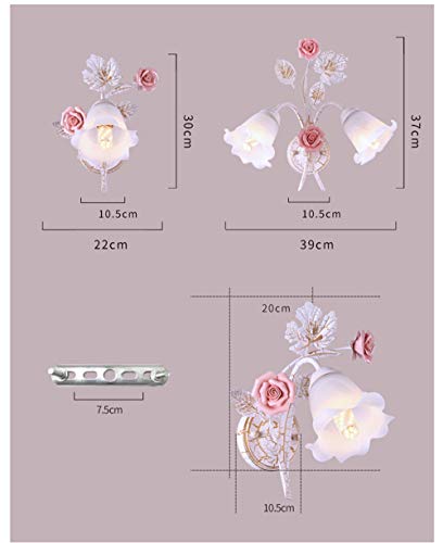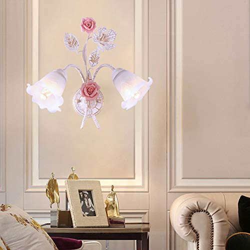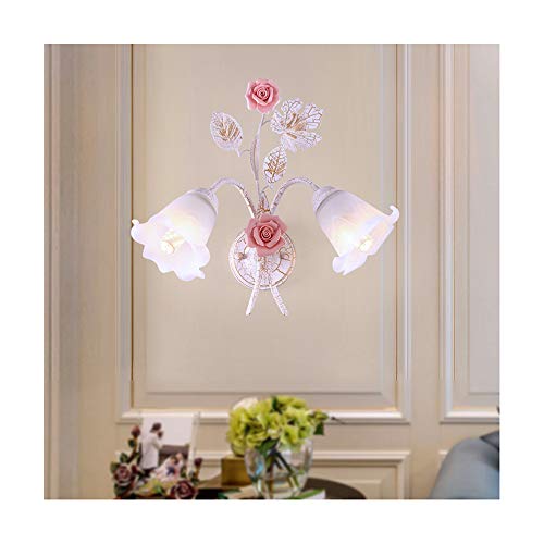 HNYD Applique da Parete Stile Rustiche, Tradizionale Lampada da Parete Creativo Ceramica Rosa floreale Arts Lampada da Muro con Vetro Paralume E27 per Camera da Letto Ristorante Corridoio Soggiorno,B