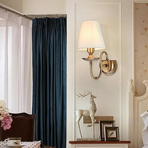 Applique da parete Da WENSENY Applique classica colore ottone metallo paralume bianco tessuto retro in stile antico 1-braccia. E14 1x60W 230V