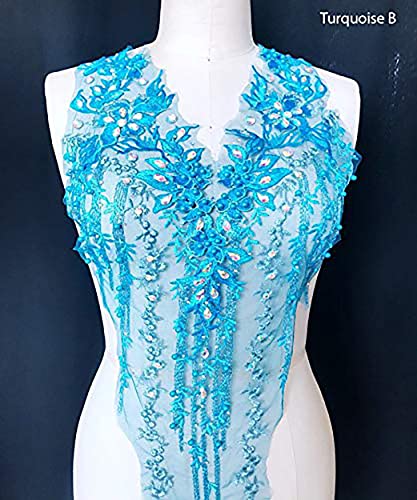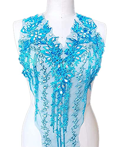 Applique in pizzo 3D con perline ricamate floreali strass Trim Toppe ideali per il fai da te scollatura corpetto matrimonio abito da sposa Prom A2AB (B, turchese)