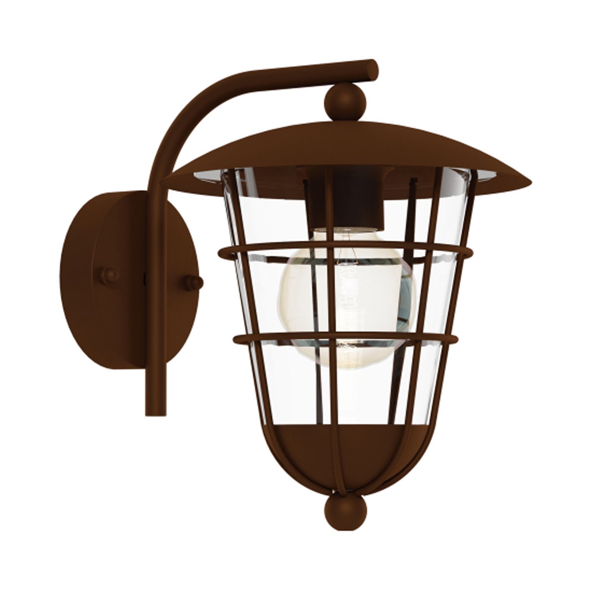 PULFERO 1 Parete discendente 1x60W E27 Struttura alluminio verniciato marrone anticato / diffusore policarbonato trasparente e alluminio verniciato marrone anticato. IP44 Dimensioni: 22 x 28 x H28