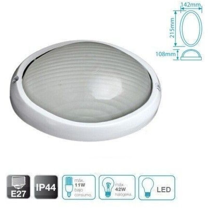 Semi-ovale in alluminio Applica Disponibile solo nei colori bianco Tenuta: .. IP44 Con il materiale. isolanti diffusore in vetro e griglia di protezione. con E27. 230V Per lampadine alogene o LED.
