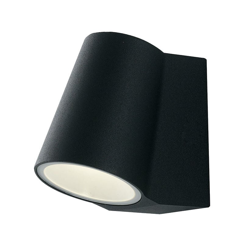 Lampada in alluminio a LED integrato con finitura bianco o nero goffrato. Colore: Nero Materiale: Alluminio Tipo sorgente o lampadina richiesta: LED Watt: 6 Lumen: 400 Lumen Kelvin: 4000 Grado di protezione da corpi solidi e acqua: IP44 (adatto all'esterno con esposizione limitata) Altre informazioni: ;