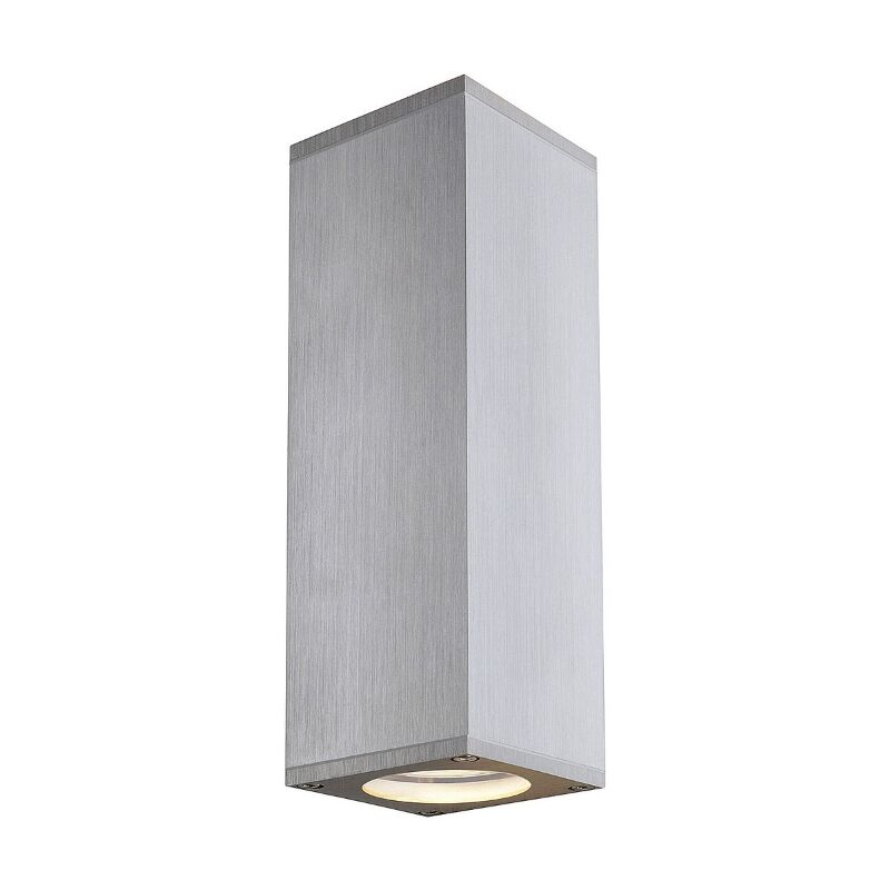 Lampada squadrata da parete per esterno in alluminio spazzolato e vetri di protezione trasparenti...biemissione;