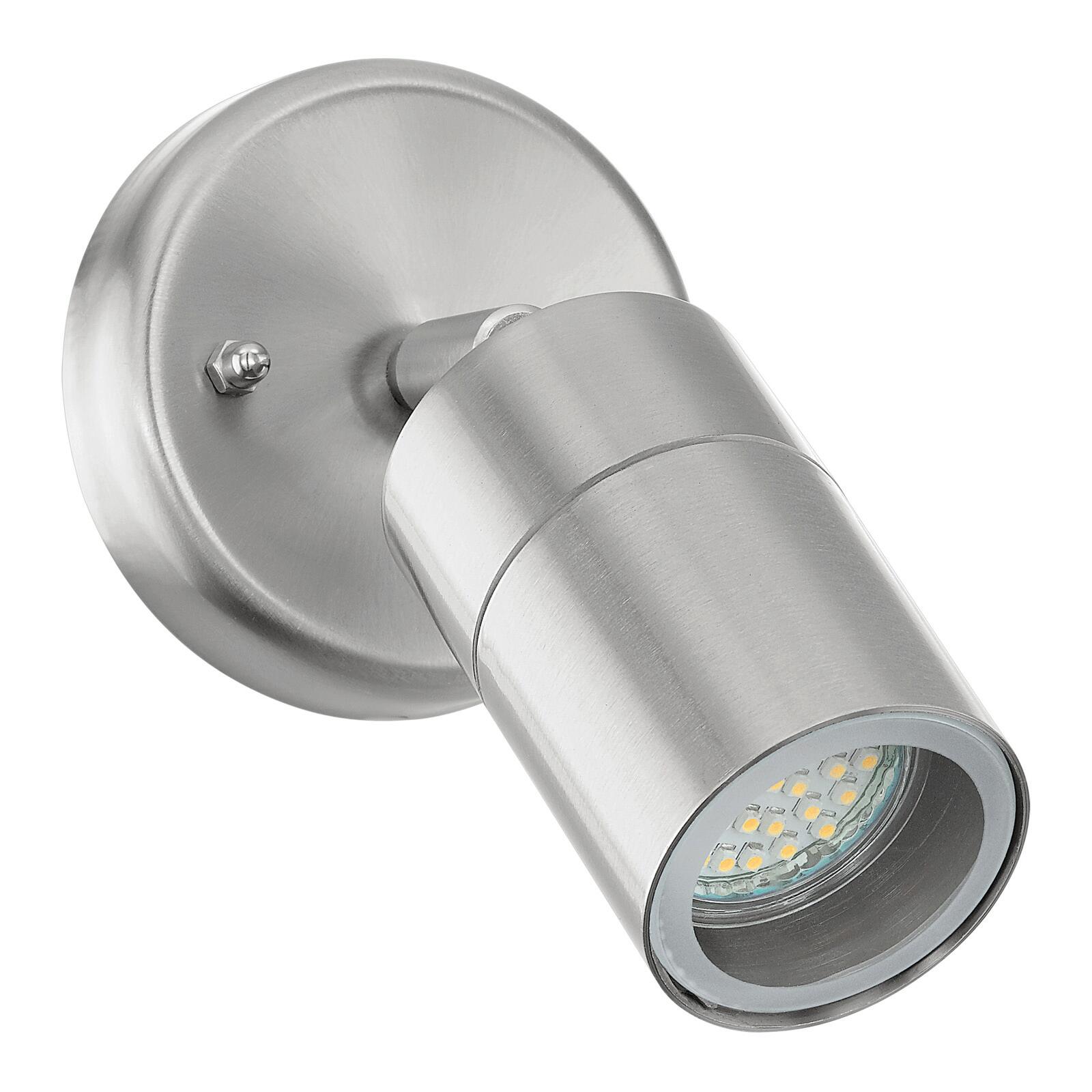 Applique da parete. 1x5W. Lampadina non inclusa, attacco GU10. Struttura in alluminio spazzolato / diffusore orientabile in alluminio spazzolato e vetro trasparente. IP44. Dimensioni: Ø6,5 cm