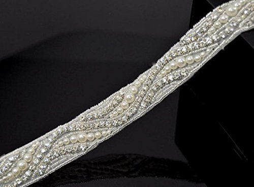 Applique di strass Shinybeauty RA144 - 91 cm, termoadesiva. Cintura da sposa o fascia per capelli decorativa, Ivory RA280, width is 2.5cm, length is 91.4cm