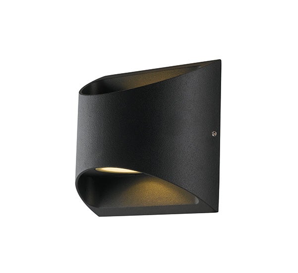 Applique a LED in alluminio goffrato nero. Ideale per illuminare una facciata, un passaggio o per delimitare una zona esterna. IP54: garantisce la protezione dell'apparecchio dalla penetrazione della polvere e dalla pioggia