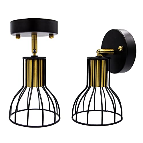 NA Applique Vintage Industrial Nero, 2 Pezzi Lampada da Parete Moderno Industriale in Metallo E27, Retro Lampada da Muro Regolabile a Gabbia in Metallo per Casa, Bar, Ristoranti, Club