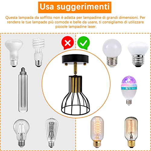 il portalampada da soffitto è adatto a qualsiasi lampada ad incandescenza o lampadina LED (escluse le lampadine) con accessori standard e26/e27;